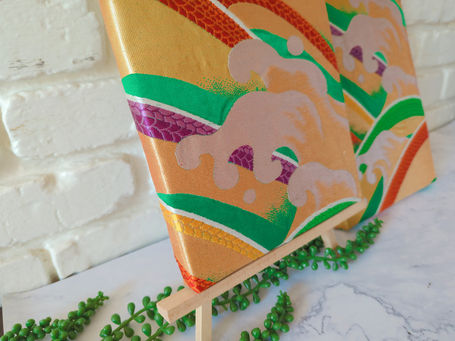 Set of Two,WAVE Wall Décor Made out of Japanese Silk KimonoOb, Canvas Wall Art, Tapestry, Wall Panel, Gift