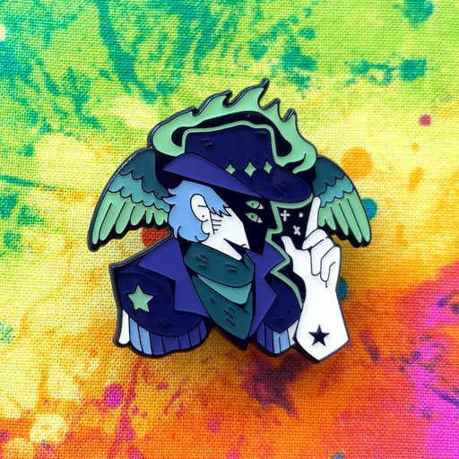 Ultra Infinite Shop$16.00| /Gale is 2 inches long, with hard enamel, screenprint, and recessed metal details. He has two pin posts with rubber backings and black nickel plating.