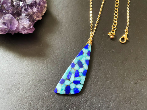Intarsia pendant, reversible pendant, natural gemstone, womens necklace, rainbow jasper, amazonite with lapis lazuli pendant, gifts for her