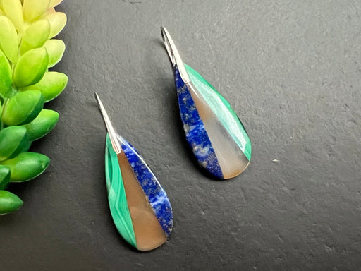 BeadsNShine$48.00| /This earring consists of natural intarsia stone with sodalite, malachite and agate. The total length of the earrings is around 38mm from the ear lo...