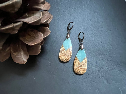 intarsia earrings, statement earrings , unique dangles, natural stone earrings, lightweight