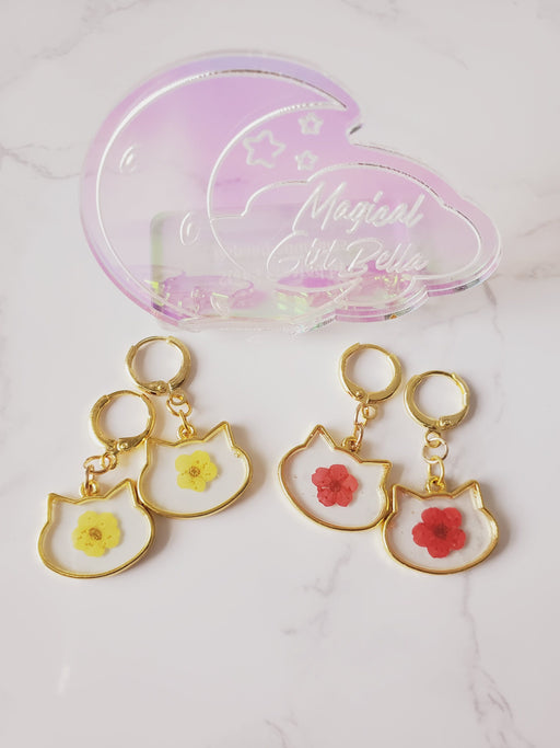 Magical Girl Bella$15.00| /Flower Power! These kitty charm earrings are made with real press dried plum blossom flowers. Perfect way to flaunt your aesthetic as a cat lover! ...