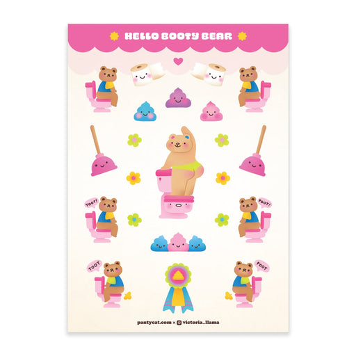 Panty Cat$6.00| /Booty Bear is Panty Cat's frenemy. A6 glossy vinyl sticker sheet