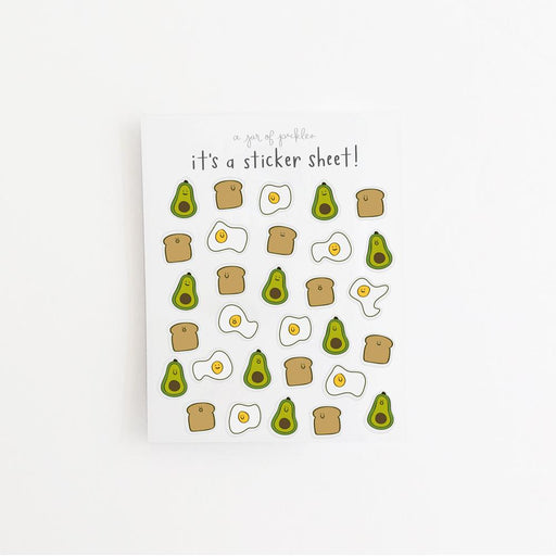 A Jar of Pickles$4.50| /Get a full sheet of breakfast-themed avocado, toast bread, and egg clear stickers with our mini sticker sheets! Our stickers are printed on high-qu...