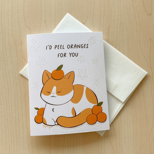 Goyangii$6.00| /Illustration features a kitty snuggled with some oranges (despite disliking citrus) with text that reads "I'd peel oranges for you". Inspired by th...