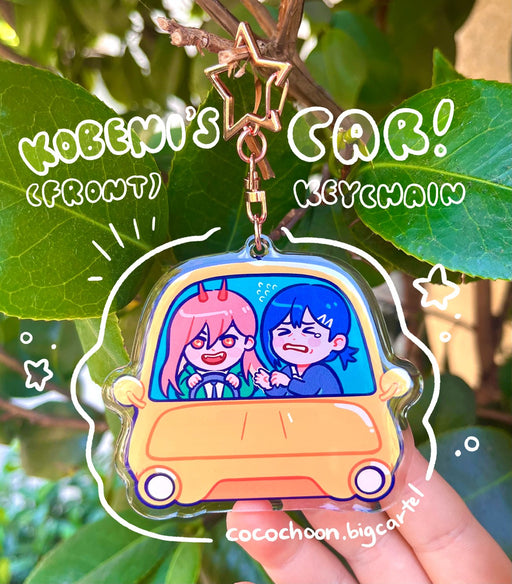 San José Made$15.00| /3 inch acrylic charm with epoxy on the front Kobeni and Power on the front Denji and Aki on the back Comes with a gold star clasp Created by Coco...
