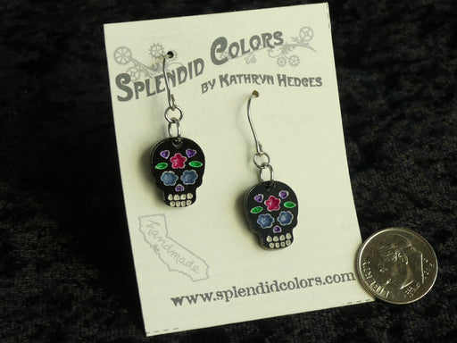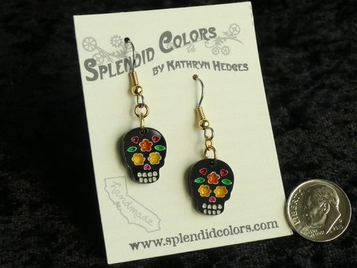 Splendid Colors$15.00| /Celebrate Dia De Los Muertos with these colorful 3/4-inch calavera earrings! Laser-etched black acrylic is hand-painted with "cold enamel" in diffe...
