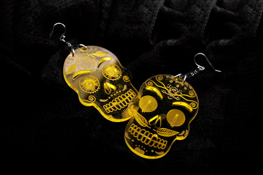 Acrylic Día de los Muertos Themed Earrings (Yellow Sugar Skulls)