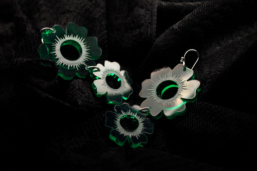 Acrylic Día de los Muertos Themed Earrings (Forest Green Flowers)