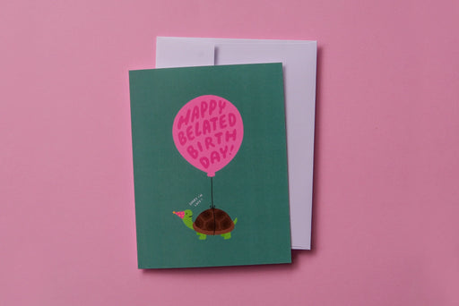 JaneLi.Co$5.00| /Sorry I'm late! But better late than never? For anyone who's always running late, this card features a slow-but-steady turtle carrying a birthday b...