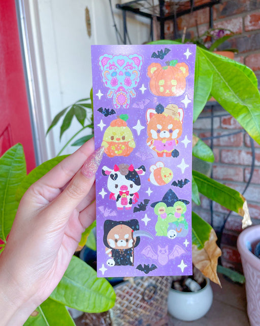 Panty Cat$6.00| /Spooky mummy bear and haunted houses. A6 glossy vinyl sticker sheet