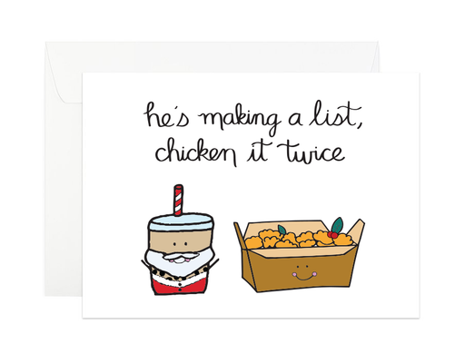 tomkcy$4.50| /He's making a list and chicken' it twice. The perfect holiday card for your boba and popcorn chicken friend. Greeting Card Details: • Original de...