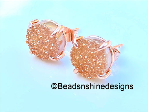BeadsNShine$27.00| /Excellent quality rose gold druzy studs. Shine with this simple yet gorgeous stud earrings. The stone is natural druzy and is secured with rose gol...