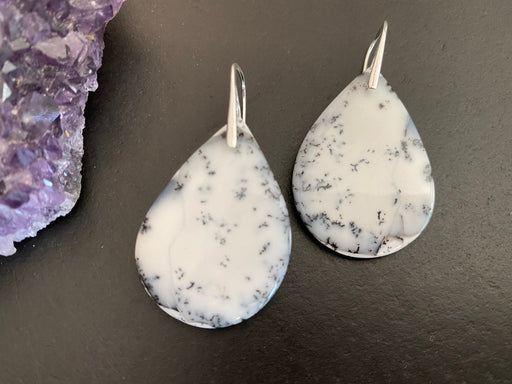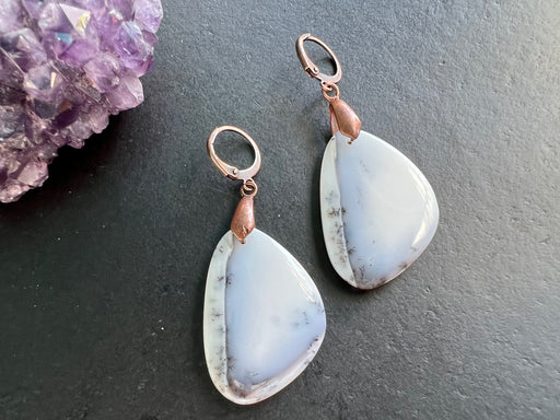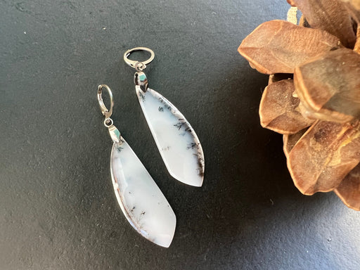 Dendrite opal earrings ,Statement earrings, natural stone earrings, white stone, opal earrings