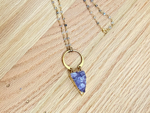 BeadsNShine$30.00| /The stone is druzy amethyst . The stone has a eye catching cut. The colors gives beautiful tropical touch to the necklace.The chain is rutile quart...