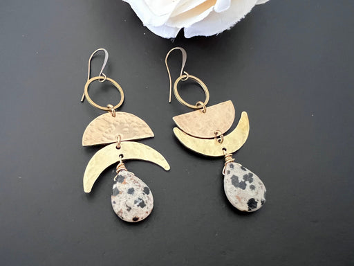 Dalmatian jasper earrings , brass earrings, statement earrings
