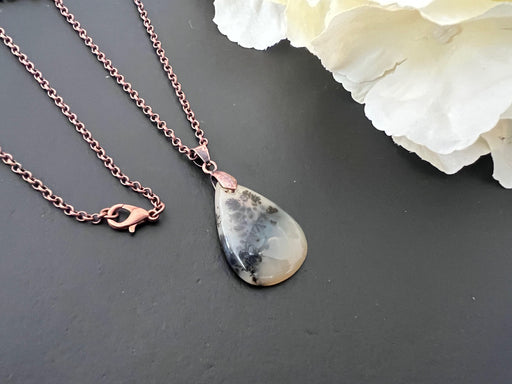 Dendritic opal pendant, Healing stone necklace , long copper chain, length 28inch