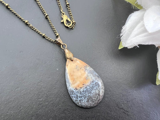 Dendritic opal pendant, Healing stone necklace , antique bronze chain, length 18 inch, natural stone pendant