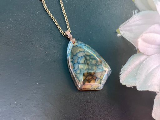 Dragon agate pendant , gifts for her, layering necklace, copper chain, natural stone pendant
