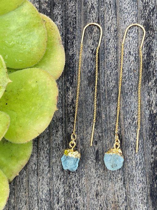 Gold threader earrings, raw natural aquamarine earrings,dainty and minimalist,sterling silver 925 , gifts for her, March birthstone