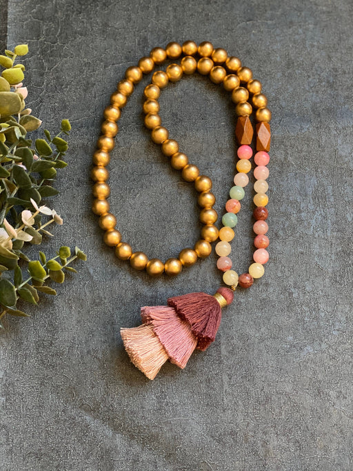 BeadsNShine$32.00| /This necklace features 3 tier tassel paired with quartzite beads and gold wooden beads. The tassel is a 3 different purple shades luxe tassel made ...