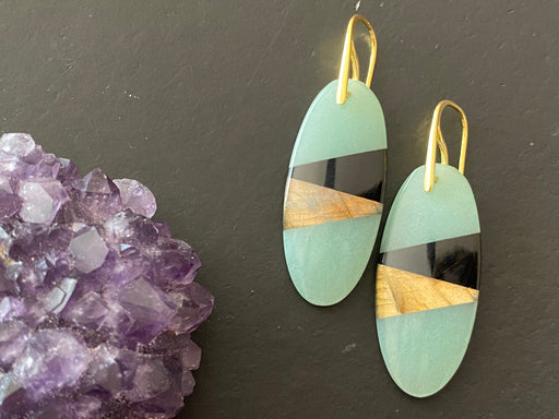 Green adventurine,labradorite,obsidian earrings, intarsia earrings, statement earrings ,natural stone earrings,925 sterling silver earwires
