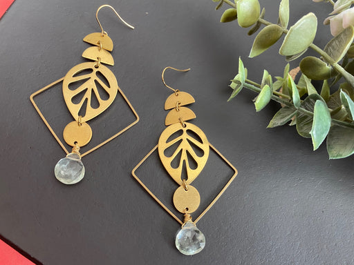 Green amethyst earrings - brass geometric earrings - statement earrings - Gifts for women - gemstone dangles