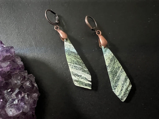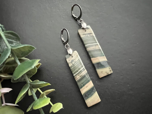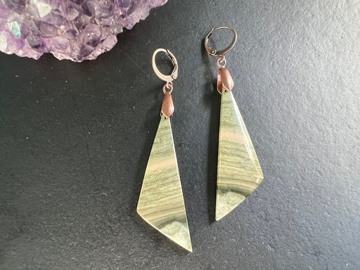 Green serpentine, labradorite, obsidian ,red jasper earrings, intarsia earrings, statement earrings ,925 sterling silver ear hooks