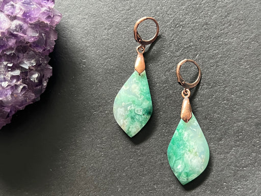 Green chalcedony earrings, natural stone Earrings, statement earring