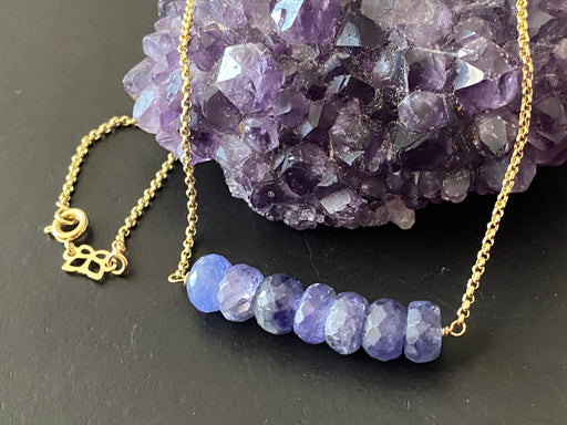 Tanzanite bead bar necklace , gifts for her, layering necklace, 14k gold chain, anti tarnish chain, size 8mm beads, December birthstone