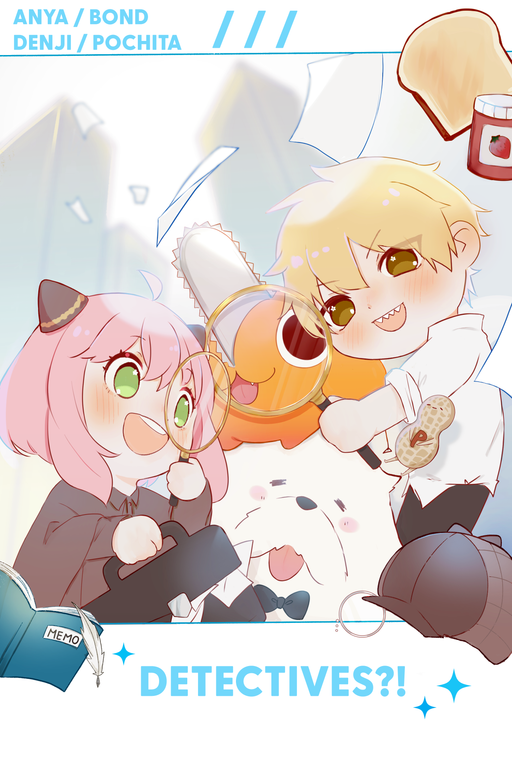 San José Made$15.00| /Detective partners Anya + Bond and Denji + Pochita on an investigation Created by kinokurei. Part of the Elegant Easy Revenge Art Show happening f...