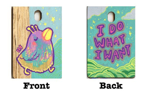 Malisa Suchanya Illustrations$40.00| /painting on recycled laminate samples, Can be used to hang as a kychain or on car