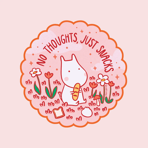 Meridrop$3.00| /This sticker features a troll creature hugging a baguette, surrounded by flowers and other breads. The text reads "No thoughts, just snacks." ✦ We...