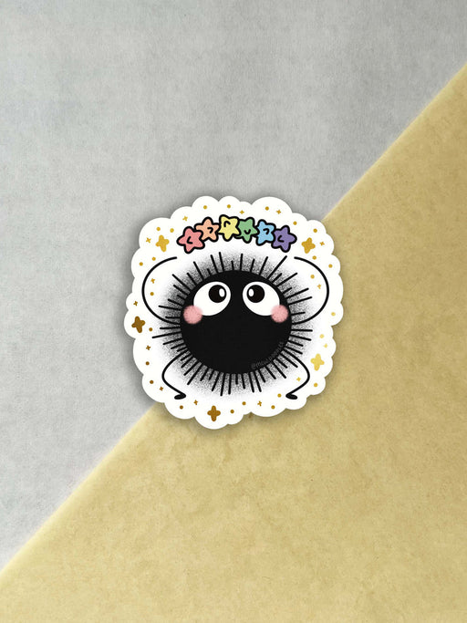 Mew Doodles$4.00| /Shiny gold metallic soot sprite sticker ✿ Made of waterproof matte vinyl