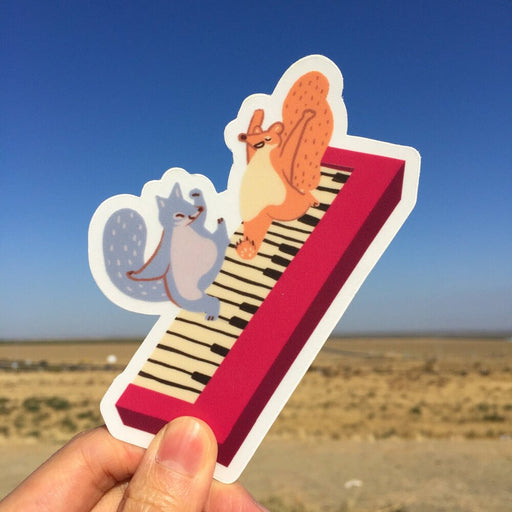 Pianist Squirrels duet Sticker | Cute Animal Musician sticker | Clear Vinyl Sticker| 4"x4"