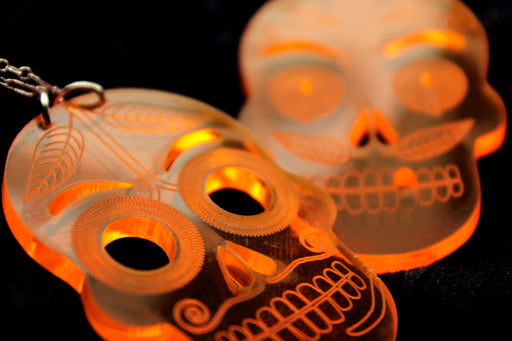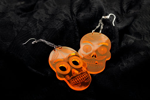 Acrylic Día de los Muertos Themed Earrings (Orange Sugar Skulls)