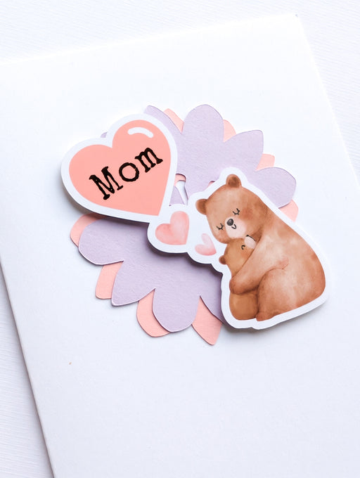 PaperPictureMama$11.00| /Handcrafted paper art card with gentle Mom bear design, backed to pop off card. PRODUCT DETAILS:• Blank inside for your personal message.• Card mea...