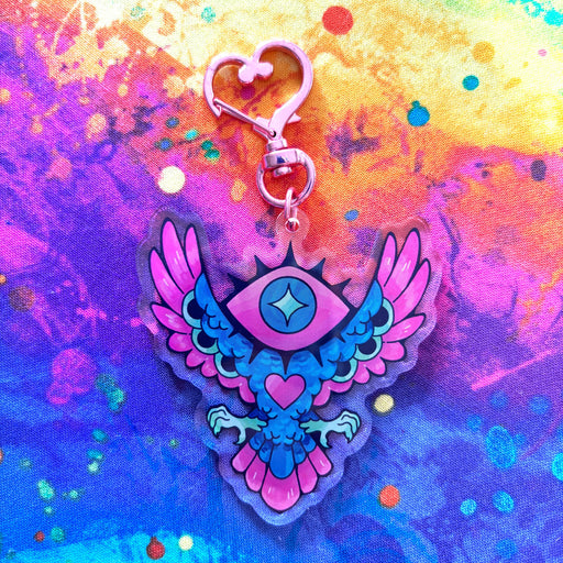 Ultra Infinite Shop$9.00| /This acrylic keychain is 2.5 inches (6.3 cm) on the longest side, double-sided with the same print on both sides; it has a pink heart clasp.