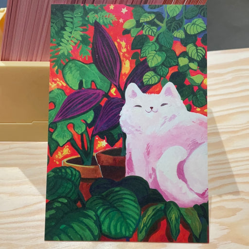 Malisa Suchanya Illustrations$5.00| /5 by 7 postcard. little cat in garden