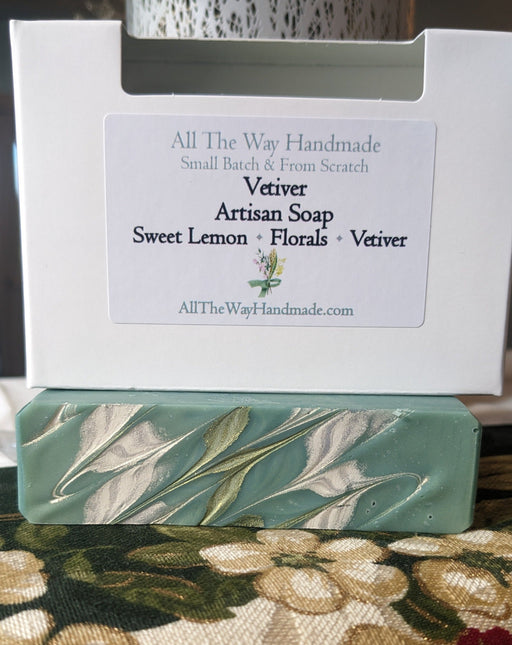 Redwood Soaps$8.00| /Vetiver Artisan Soap A stunningly simple gold-green soap that has a lush, fresh, clean green scent. Toped with light gold and green-gold mica swi...