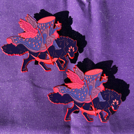 Ultra Infinite Shop$14.00| /A pink and purple angelic sword, for Sapphic pride. This pin is approximately 1.5 in (3.7 cm). The pin has hard enamel, rose gold plating, glitter...