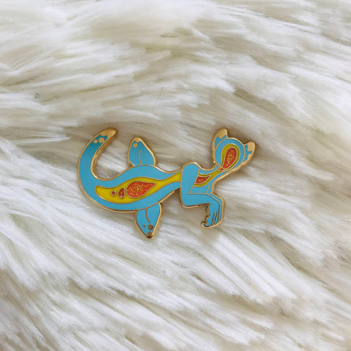 Ultra Infinite Shop$16.00| /Starry Squid is 1.8 inches wide with gold plating and screenprint. It has hard enamel and two pin posts with rubber backings.