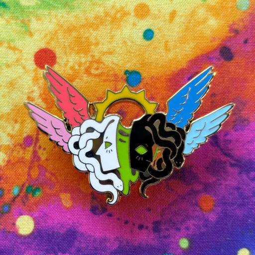 Ultra Infinite Shop$14.00| /A many-winged rainbow angel, for Rainbow/Progress Pride. This pin is approximately 2 in (5.1 cm). The pin has hard enamel and two pin posts with r...
