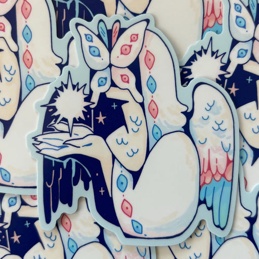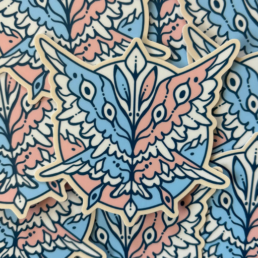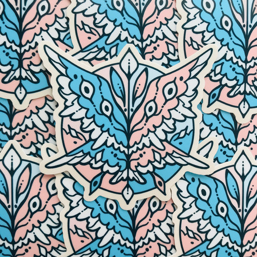 Ultra Infinite Shop$2.50| /A moth-like seraph with pink and blue wings, for Transgender pride. This sticker is approximately 3 inches (7.6 cm) on the longest side, and print...