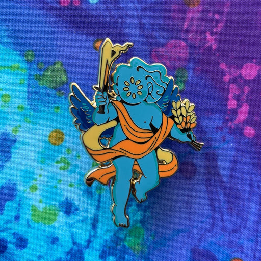 Ultra Infinite Shop$16.00| /A little putto (cherub) for the constellation Virgo. Each pin is about 2.2 inches long with hard enamel, gold plating, and screenprint. They have t...