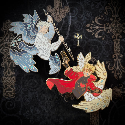 Ultra Infinite Shop$16.00| /My rendition of Archangel Gabriel, now available in two new colorways! The pin is 2 inches (5 cm) long, it has two pin posts with rubber backings. ...