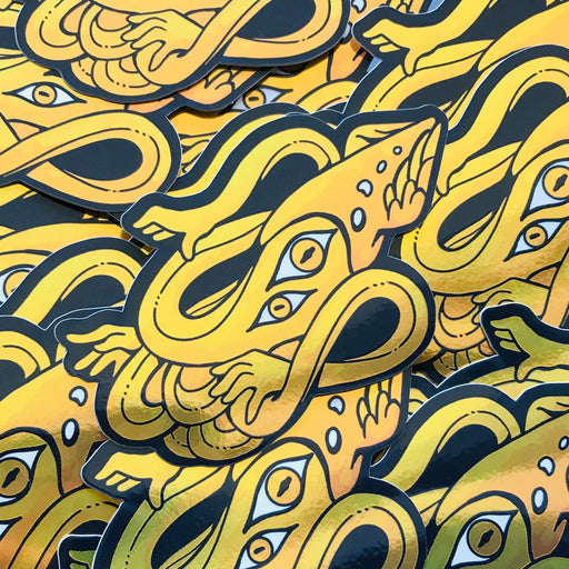 Ultra Infinite Shop$3.50| /A golden squid angel, inspired by Aten, the Sun Disk. This sticker is approximately 3 inches (7 cm) on the longest side. It features gold mirror m...