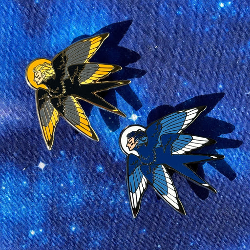 Ultra Infinite Shop$14.00| /An angelic guardian of the night! This pin is approximately 2.5 in (6 cm) wide. The pin has hard enamel and two pin posts with rubber clutches. Ba...