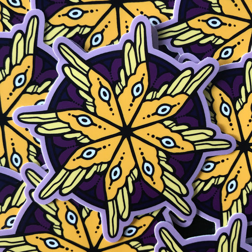 Ultra Infinite Shop$2.50| /A yellow seraph on purple, for Intersex pride. This sticker is approximately 3 inches (7.6 cm) on the longest side, and printed on matte vinyl.