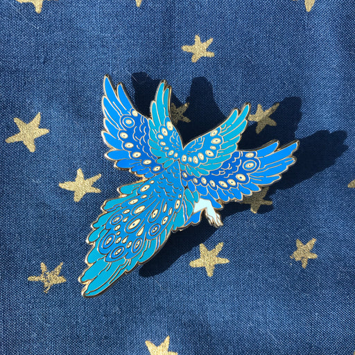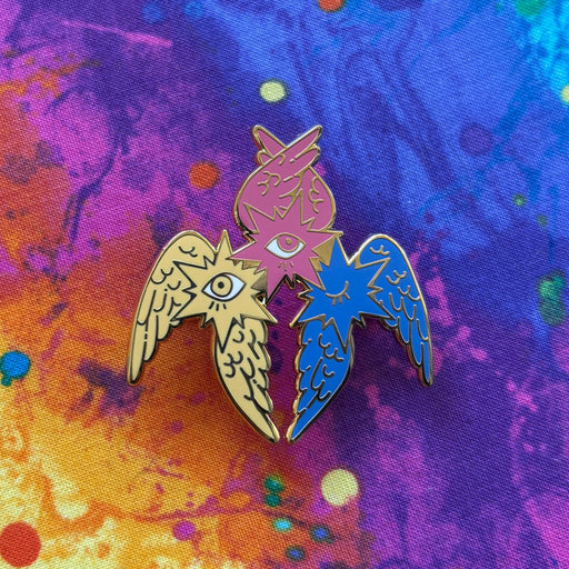 Ultra Infinite Shop$14.00| /A two-headed owl angel, for Polysexual pride. This pin is approximately 1.7 in (4.5 cm) wide. The pin has hard enamel with glitter accents, black ...
